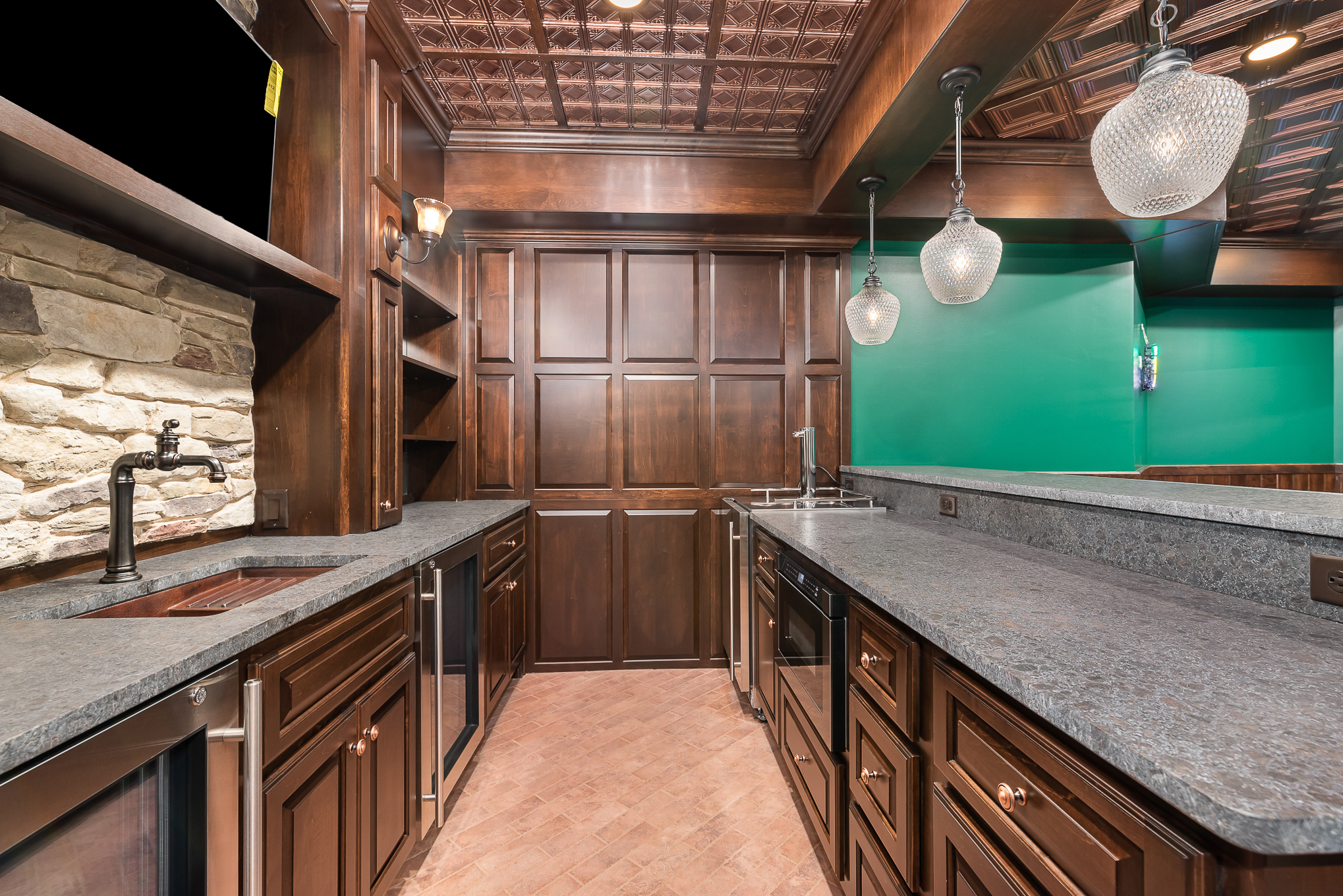 Added an Irish pub, living space, dance section, bed, and bath.